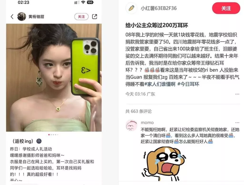 内地娱乐圈小花旦黄杨钿甜陷风波200万高定耳环高额消费不合理