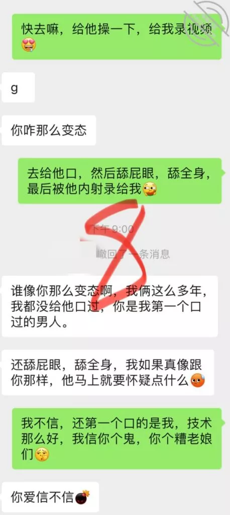 我也挺可怜,之前心心念念的等她老公来,然后体内释放她,让她B里夹满我的体液回去,让她老公舔,然后带着我的体液再被她老公Cao,可惜实现不了了,怎么就非要在姨妈来的时候回来,我俩今天聊天记录,这两天晚上我都没留她在我这睡,因为来姨妈了么,留下也干不了啥,我也觉得无聊,所以这两天每天晚上自己喝喝酒打打游戏,她就是来呆一会然后回自己家睡觉;这小娘们现在已经离不开我了,不跟我一起居然都睡不好了哈哈,不知道今天晚上跟他老公睡觉,会不会习惯性的喊个爸爸,或者给她老公玩个足交啥的,那样估计她老公马上就能想到她外面有人了吧,因为毕竟以前从来没玩过,哎,我的计划也泡汤了,心里太不爽了,还是要等下次了,不知道下次什么时候她老公才能再回来;已经第三天了吧,再有几天就可以Cao她了,很多兄弟们心心念念的小玩具,下次视频帖就可以安排上了