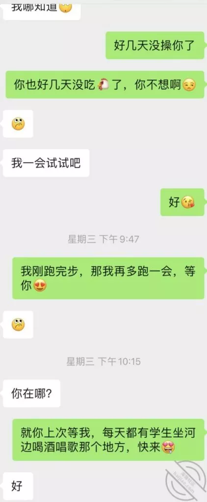 兄弟们,你们一直要的户外来了,其实视频前天就拍了的,这两天一直没空来上传,今日战场:公园的公厕;我标题说是深夜,其实当时就10点多,人还蛮多的,旁边的护城河,每天都有一大群学生在那喝酒唱歌啥的,也不知道有没有人听到哈;我画圈的这个地方,当时一直坐着一个人,看着我俩一起进厕所,后来出来的时候人还在,离得很近,估计肯定的听得到的,好刺激;前天晚上的聊天记录,想着她老公在家睡觉,我一个微信就能给叫出来让我Cao,太刺激了;先来几张图片给大伙看看:你们不是一直说想看在户外Cao她么,答应你们的,
