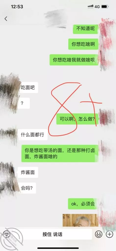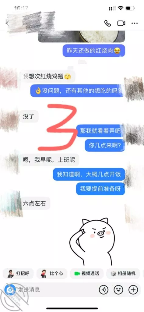 兄弟们好消息啊!上次不是准备强推未果吗,当时走了以后,我以为会不理我了,没想到我尝试着发个消息给他。居然回我了,也没有半点不高兴的样子,聊天记录自己看哈!之前不是有讲过,我喜欢自己烧饭吃,上次跟他吃饭的时候也铺垫过会邀请他来,今天以为他会生气,抱着试试的的状态,结果邀约成功。我连认证的纸条都已经准备好啦,哈哈哈,胜败在此一举了,务必拿下此妞,我的性福生活要来了哦,好期待她跪着给我口的样子,还有在Cao她的时候叫她给老公打着电话,太邪恶了,不说了,我要去准备晚饭啦,最后再附上两张他发来的照片吧!