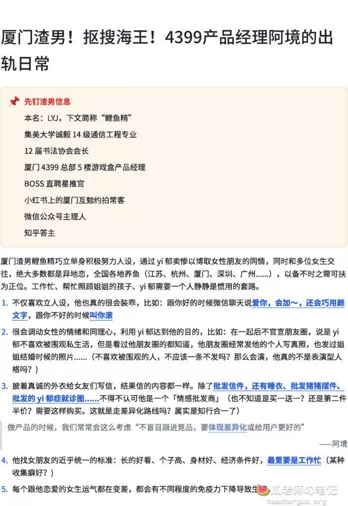 尤其是这位产品经理,简直戏精附体,脚踏N只船,拿全国当鱼池养鱼,估计全国各地都有海王的鱼。