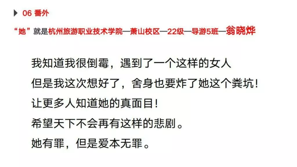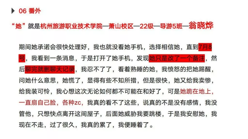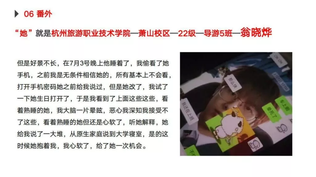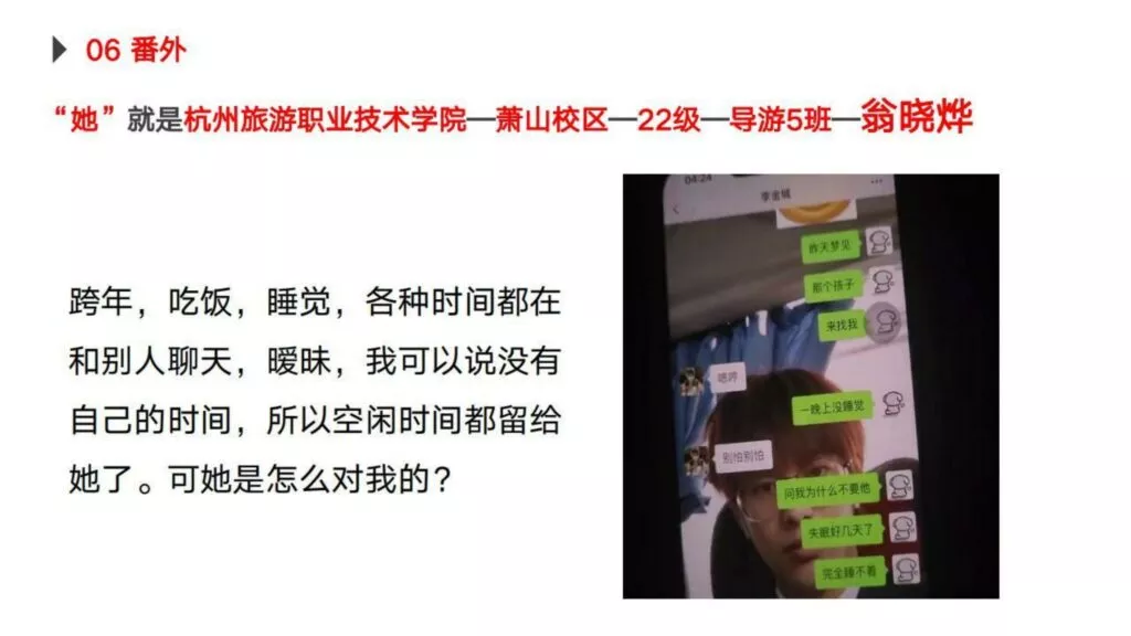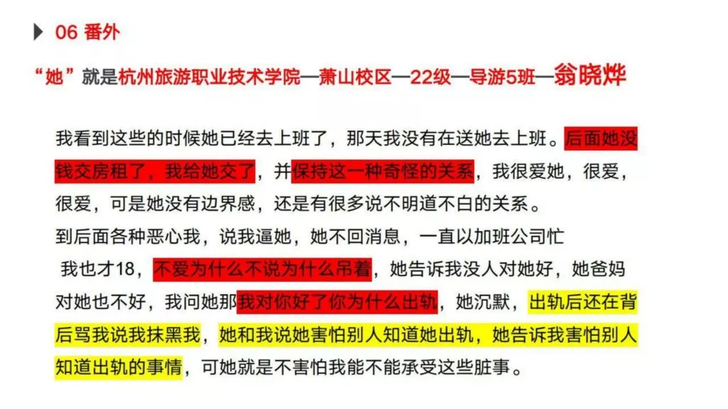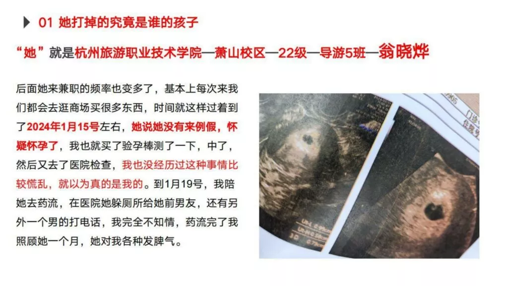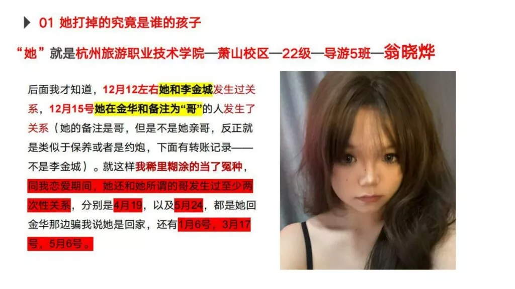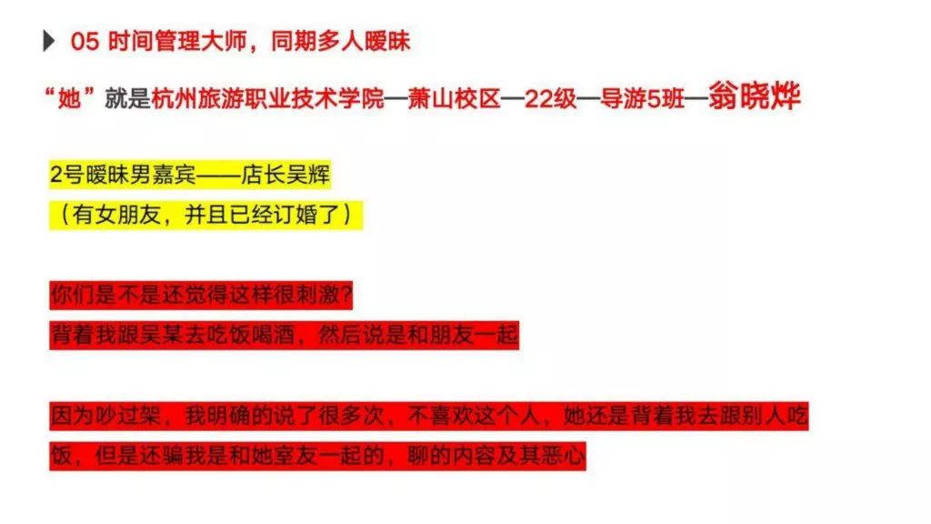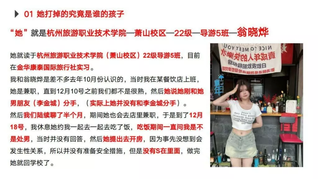 30页PPT曝光杭州旅游职业技术学院出轨女翁晓烨为前男友堕胎找接盘侠-内服原件下载链