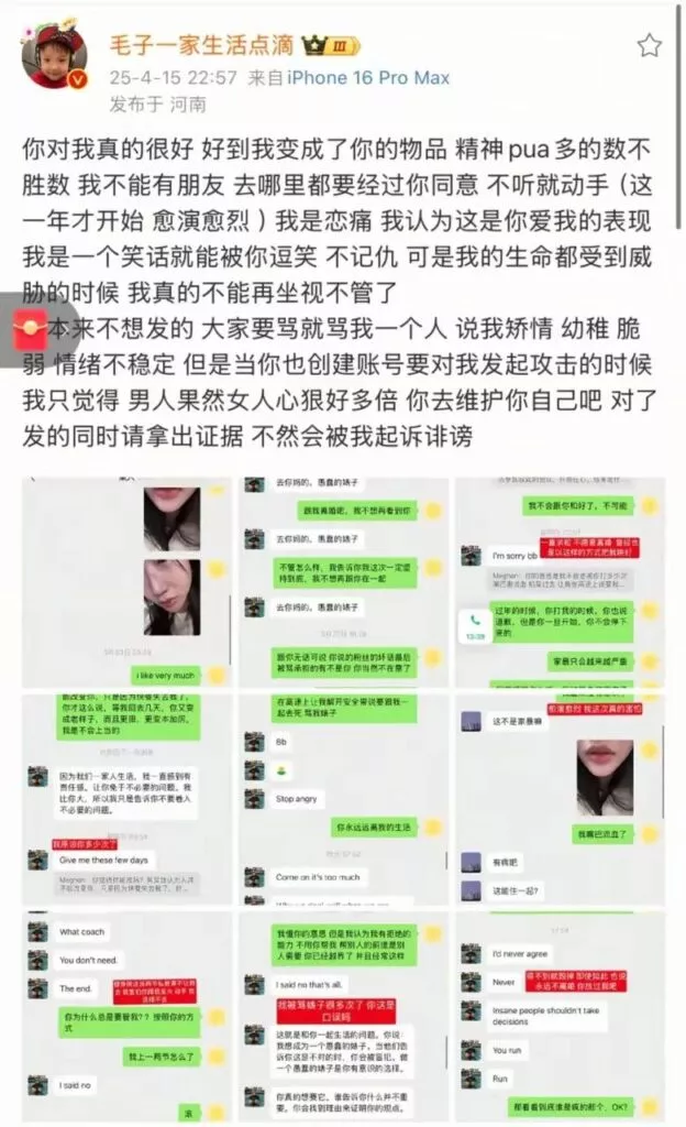 抖音上拥有220万粉丝的跨国网红夫妻毛子一家,分享了他们从相识、相恋到结婚的生活点滴,渐渐积累了大量人气。尤其是他们可爱的孩子更是让这对跨国夫妻瞬间走红,生活中恩爱甜蜜的点滴也吸引了无数网友的羡慕。然而,近日女方突然爆料,指责其俄罗斯丈夫长期存在家暴行为,并B迫她服用安眠药,声称这段婚姻早已名存实亡。