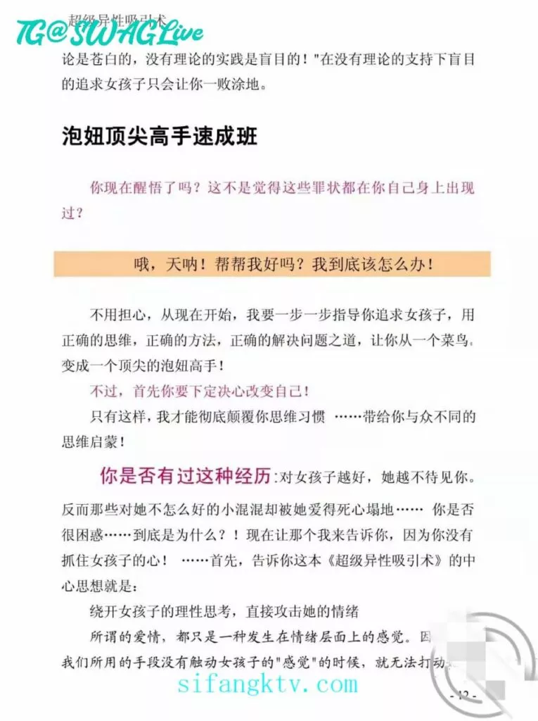 没想到回我信息那叫一个速度,先说我看错了,后说送东西,百般解释,态度还强硬。老师都是这么的盛气凌人么?昨天跟我说想给我公布于众的时候,我就怒了,想摊牌,但是想想浪迹教的理论,男人大度一些,还是算了,,我真的有些心态崩了,这半年以来pua的课程我是天天看,吸引力法则我也懂(一个男人是优秀的,优秀的,温暖的,有趣的,独立的,那这个人自然就有了吸引力)但是对于我大姨子这样的职业女性来说,我感觉什么用没有!叫她等我,就在刚刚我去找她,不接电话!不回信息!人也找不到!知道我内心有多失落么?