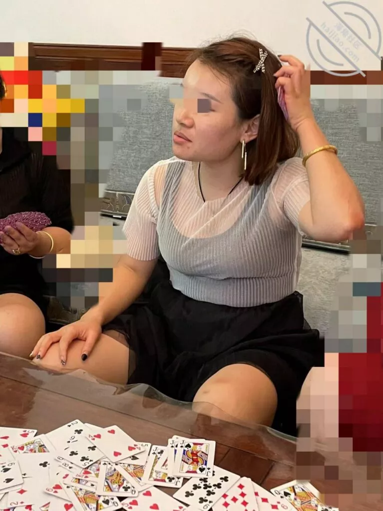 表姐在厕所后面放了个小置物架!我正好用上了!这次来了个表姐的同事!打牌的时候总算让我抓住啦! 平日里这个女的就特别搔! 很开放!她喜欢看黄片! 而且说话特别搔!眼神总是带着勾人的感觉!(别问我咋知道的,她和她男朋友还有表姐喝酒的时候一块看了个片段。我也在场!)我提前去厕所把摄像机放好 调好角度! 静静的等她来!先上几张生活照 这都是以前打牌偷拍的!她旁边就是我表姐的胖邻居!低匈真是太刺激我了! 打牌的时候我真的没忍住偷拍!我记得最后差点被发现了!她说:你在照相吗?我说:照啥相!我回信息呢! (我有个习惯,偷拍的时候喜欢假装上下滑手机!其实手指根本没碰到屏幕!哈哈)