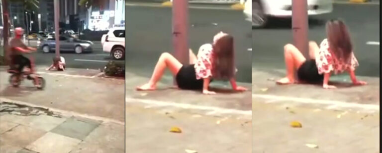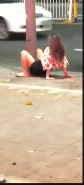 停手啊那只是个电线杆!街头御姐突发恶疾猛猛对着电线杆输出