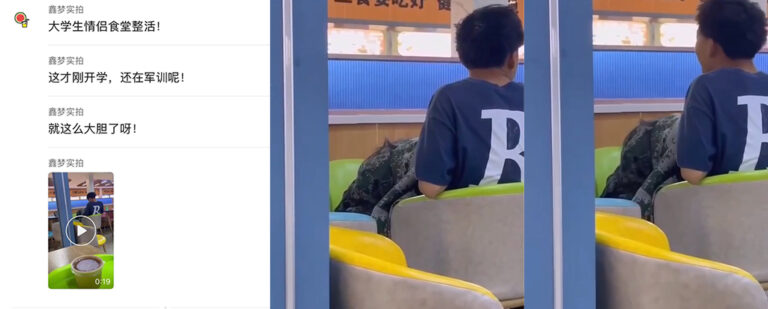 这也就刚开始没多久,这些大一新生就开始搞事情了。军训刚结束,浑身热血没出释放,这对新生情侣就在食堂里整了个大活。