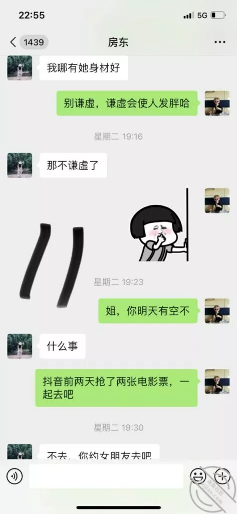 5.本以为房东是个闷搔,就约她出来吃饭,没想到唉