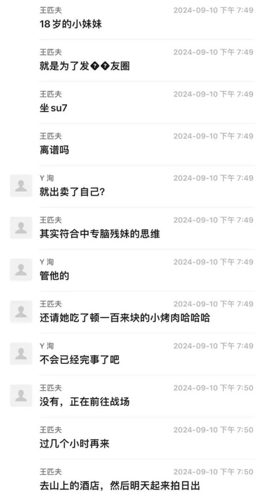 又骗我买小米su7?网约车群聊爆料嫩妹为了坐su7奉献身体