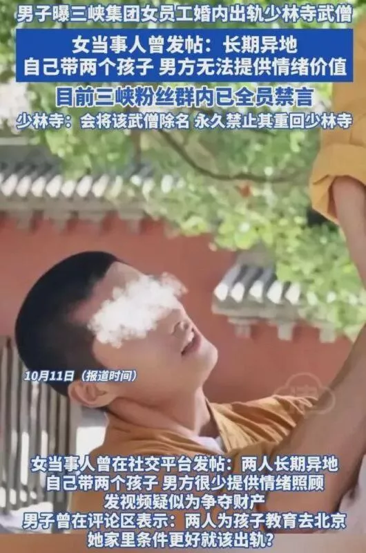 三峡集团女员工张乔被丈夫举报出轨少林武僧张云翔