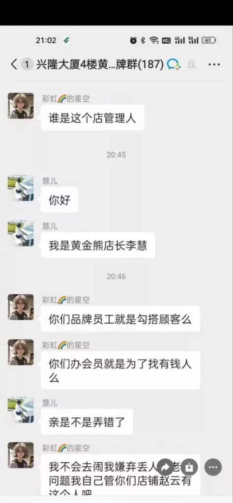 辽宁盘锦兴隆大厦黄金熊男装销售赵芸吸引客户被正宫爆锤