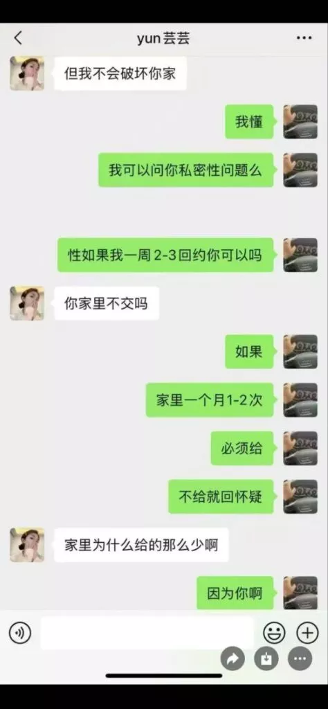 正宫妻子曝光的聊天记录