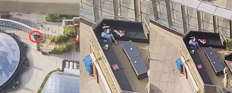 北京工业大学体育馆露天休息区,一对情侣在阳光明媚的下午,上演了大尺度亲密行为,他们以为四周无人不会被发现,但实际上早就被远处的学生看的一清二楚,情侣的举动逐渐升级,引起围观和议论。